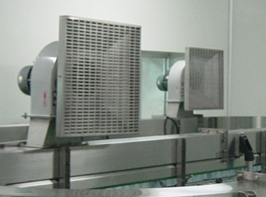 Air ConveyorAir conveyor is horsed on the floor, with fan installed on the top. Air filter is positioned at every entrance of air fan, to prevent dust blown into bottles. Bottles are blocked on the neck in the conveyor and transported into filling machine by blowing power. All are made of stainless steel SUS304, except the horses, board of plastic and nylon.