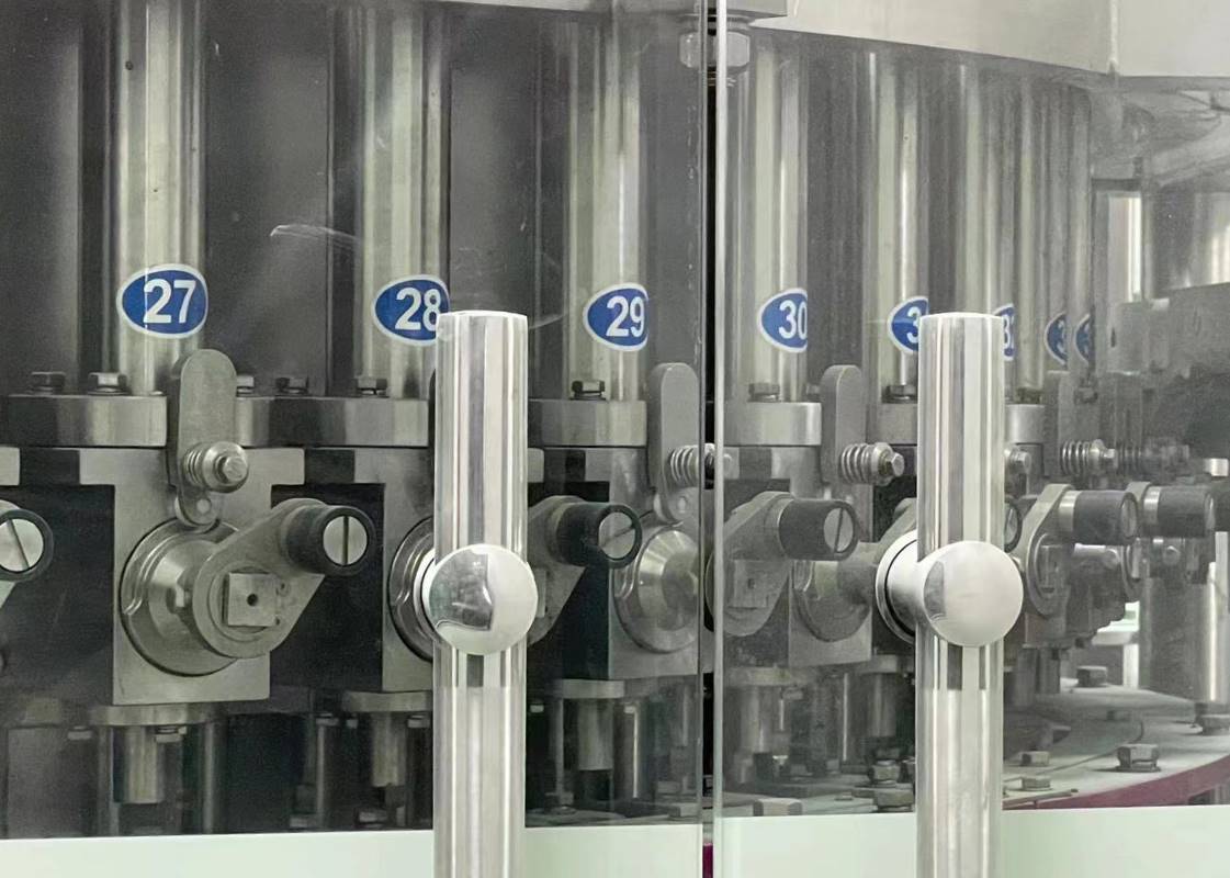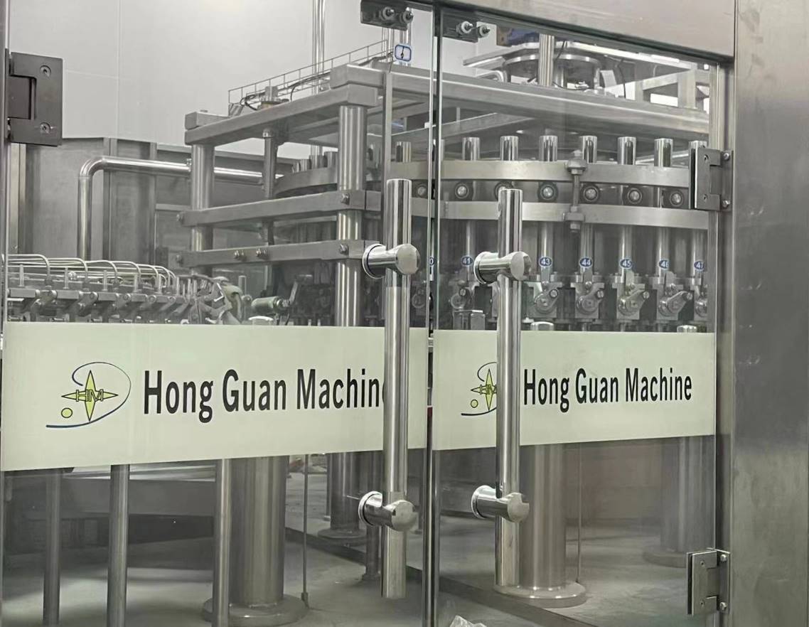 Automatic 4 in 1 Pulp Juice Filling MachineHONG GUAN Machine offers high quality automatic bottle filling equipments with 2000-40000 bph for juice production line. We even provide 4 in 1 liquid filling machine to bottle pulpy juices, or juices that require a hot-filling process. The four functions of bottle rinsing,pulp filling and juice filling and capping are composed in one body of the machine. The whole process is automatic. The handle of the machine can be freely and conveniently turned to adjust the machine to fill various types of bottles. HONG GUAN Machine not only provides a variety of automatic liquid filling machines but also provides whole production line from water treatment system, beverage processing system to automatic robot palletizing machines. As one of the leading beverage-packing machine manufacturers, we provide quality liquid filler and amazing service to many of our customers worldwide. Piston Filling Machine1. Filling machine contains turret part, material tank, filling valve, and control part. Machine height can be adjusted by the rack in machine bottom. Empty bottles enter into conveyor belt, then by bottle screw and starwheel into filling valve. 2. Filling valve is piston filling type. Under filling valve is a turning valve to control fill or not. Fill or not finally determined by bottle entering into filling machine or not. No bottle, no filling. There is a proximity switch detects bottles. 3. Material level detects by material contactor and through magnetic valve to determine adding material or not. Two conditions in material tank: low level and high level. When machine works automatically and material level is low, then add material. When it reaches high level, stop. 4. When customer need adjust filling height, rotating the handwheel in the inner part of the rack. 5. Filling machine contains CIP washing ball. Our machine has CIP tube connects with CIP cleaning system. Washing ball under the pressure of pump to make ball rotating to wash filling tank. Under the pressure of open valve turret washing material drain out and finally return to CIP system. Juice Filling SectionProducts by the liquid line into the bucket; By the star wheel into the filling machine, hold the bottleneck, rotate with filling machine, etc, and in accordance with the guide rail up to open the filling valve; Products under the action of gravity, flows through the filling valve for filling the bottle, and keep the liquid level; After entering forecast drop bottle let stand area, the bottle with holding bottom facility down a certain height, make the bottle from the filling valve, filling valve to close, filling valve exhaust pipe of products under the gravity, the flow back to the bottle; The Last Lifting device with the bottle fell to a height of star wheel clamp, derived by the star wheel will bottle. Recycle Pump and Vaccum Pump will be frequency Control. |