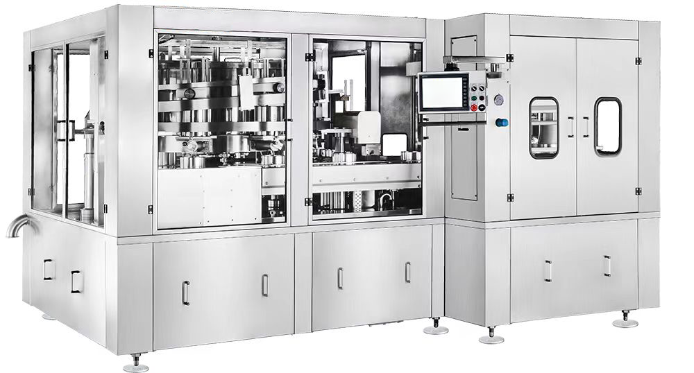 Automatic Can Piston Filler SeamerHong Guan Machinery Piston Filler is developed for all kinds of containers, large or small, plastic or glass, metal can or jar. The filling range includes the product that is dense or semi dense, with or without particles, such as chilli sauce, tomato concentrate, baby food, sweet condensed milk, fruit pulps, honey, jams, pet foods, spaghetti sauce, cream, jelly, aloe vera and so on. Filling and sealing machine is our company introduced the German company filling and sealing technology, after the digestion and absorption, the design and manufacture of easy can filling and sealing equipment, can be widely used for partciles with liquid mixed filling. Piston Filling Machine• Filling machine contains turret part, material tank, filling valve, and control part. Machine height can be adjusted by the rack in machine bottom. Empty bottles enter into conveyor belt, then by bottle screw and starwheel into filling valve. • Filling valve is piston filling type. Under filling valve is a turning valve to control fill or not. Fill or not finally determined by bottle entering into filling machine or not. No bottle, no filling. There is a proximity switch detects bottles. • Material level detects by material contactor and through magnetic valve to determine adding material or not. Two conditions in material tank: low level and high level. When machine works automatically and material level is low, then add material. When it reaches high level, stop. • When customer need adjust filling height, rotating the handwheel in the inner part of the rack. Seamer• This machine has a control system with a can under lid and no can without a lid to ensure the normal operation of the machine. • The sealing roller adopts high hardness hematogenous quenching (HRC>62) for the original Taiwan roller, and the sealing curve adopts optical curve grinding precision processing to ensure the quality of sealing and ensure the normal operation of the machine. |