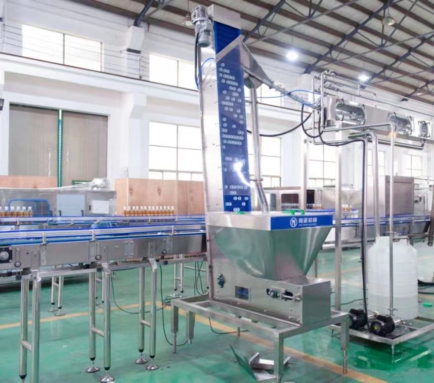 Cap LoaderEquipment composition: The capping capping machine is composed of the capping machine frame, cover bin, frame assembly, cap lifting device, reverse cap recovery system, blow cap gas path system and other components. After the bottle cap is poured into the lid bin, the lid is completed in the lifting process by lifting and conveying. The positive lid is lifted and entered into the capping (capping) machine by blowing the cap system. The reverse cap will fall freely to the bin. The whole system process to achieve automatic control, cover bin full cover, lack of cover, cover channel full cover, lack of cover will be displayed through the corresponding detection switch (power off, proximity signal), to achieve automatic operation. |